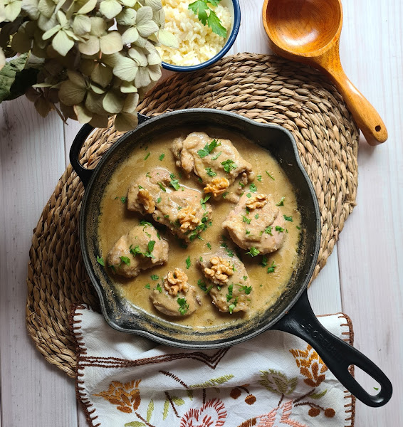 El pollo satsivi es un plato muy popular en Rusia, es de origen georgiano, donde es el plato nacional. La protagonista de este plato es la salsa de nueces, que resulta una delicia combinada con la cebolla y el picante, lo que hace el pollo de lo más jugoso.