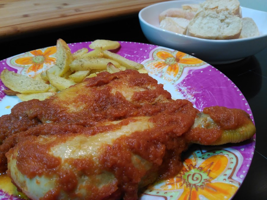 Como me gusta mojar pan en las salsas....este plato es para disfrutar de lo lindo con el mojeteo. La salsa es lenta de hacer, pero merece la pena dejarla un buen rato, que sale de rechupete.