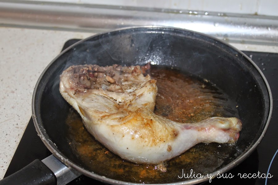 Los freímos en una sarten con un poquito aceite. Los sacamos y los ponemos en la olla rápida.