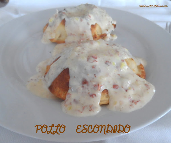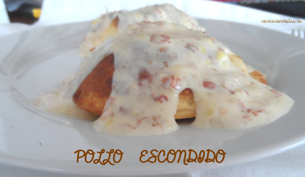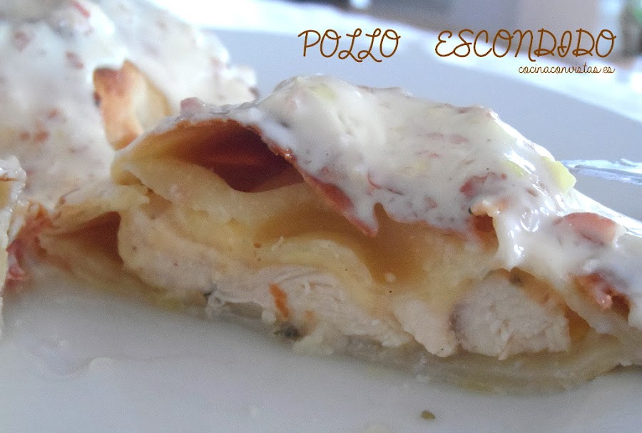 Fuera del horno nuestro pollo escondido, lo napamos con la salsa caliente y…
