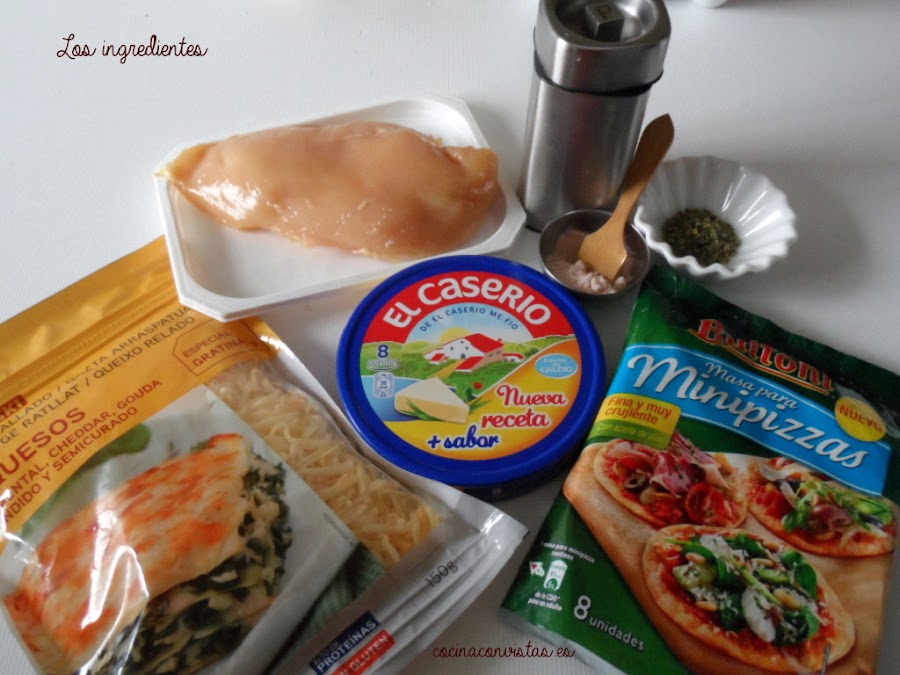 En una de las bases de pizza colocamos ¼ parte del pollo