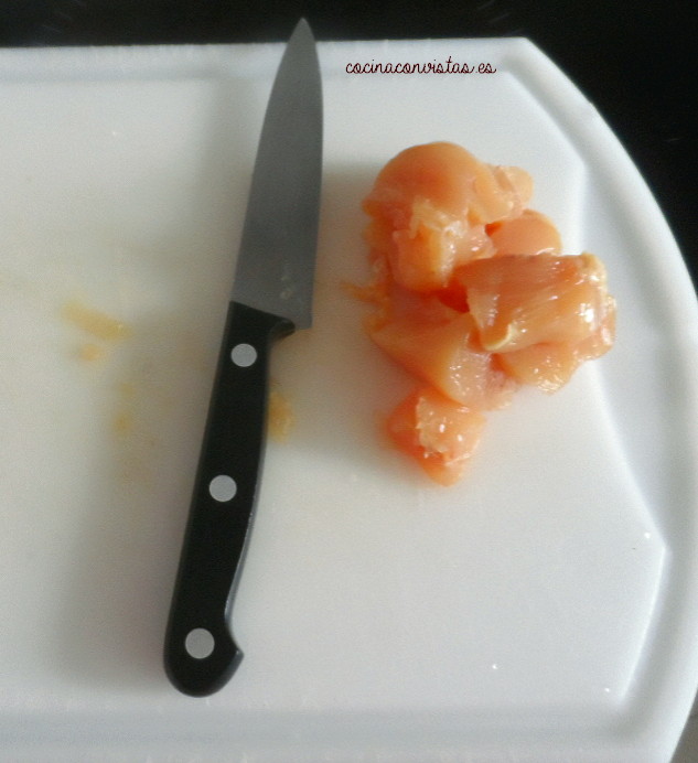 1/2 pechuga de pollo limpia y cortada en trozos pequeños.
