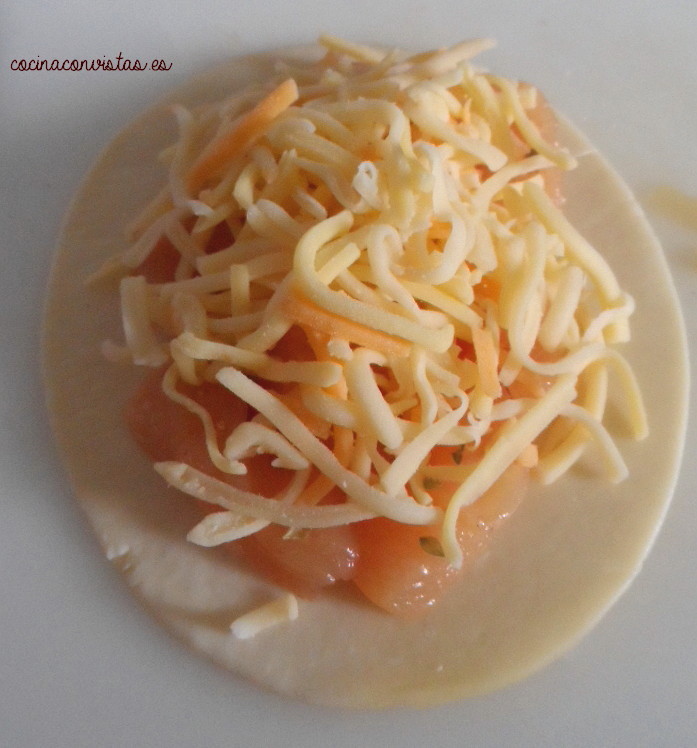 y encima ponemos, con generosidad, parte de la mezcla de 4 quesos rallada.