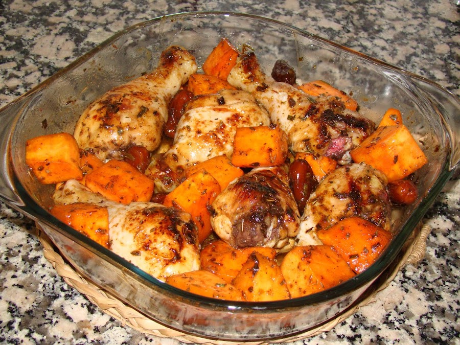 Echar las batatas y remover junto con el pollo para que todo quede bien impregnado.