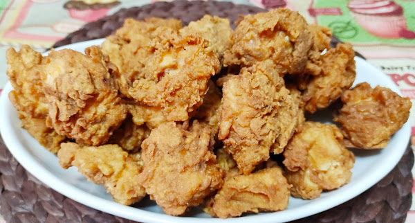 En algunas recetas dejan reposar el pollo en un suero de leche y luego lo rebozan con la mezcla de harina y especias antes de freírlo. Pero en casa lo hacemos como indicamos en la receta y nos parece que queda de lujo.