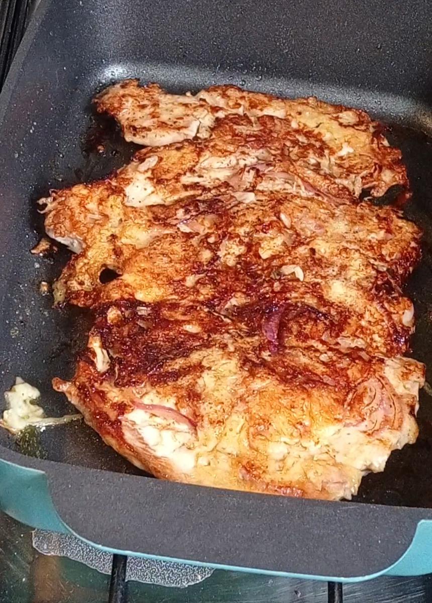A veces no resulta fácil poner el nombre a una receta, esta receta la puedes encontrar como pollo estilo napolitano, pollo a la pizza, pollo estilo pizza, etc.Mi amiga me llamó y me dijo: