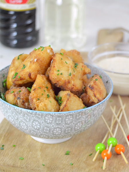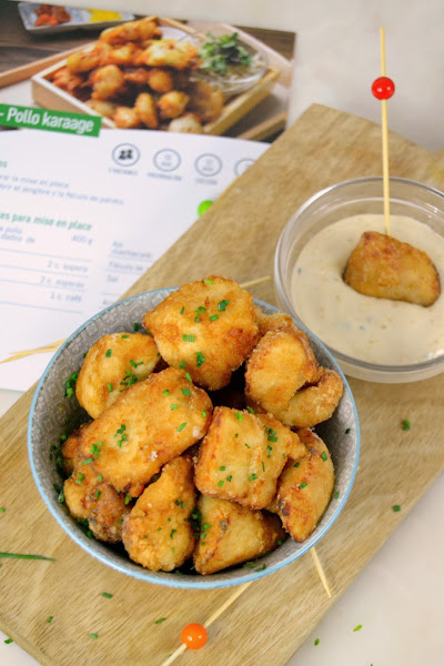 Por cierto, para acompañar estos dados de pollo frito al estilo japonés hemos preparado una mayonesa con un toque de salsa de soja y cebollino picado ¡Todo un acierto!