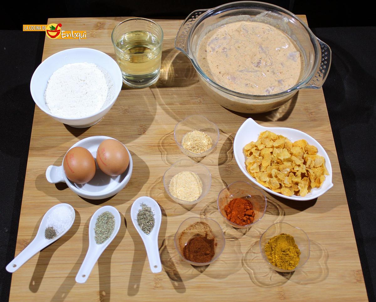 NOTA: La combinación que os propongo de especias, tanto para el marinado como para el rebozado es orientativa, quiero decir que podéis añadir, suprimir o cambiar especias en función de vuestros gustos.