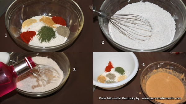 1- Empezamos haciendo en un bol la mezcla de harina y 1 cucharadita de cada especia