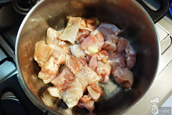 Podemos poner trozos de pechuga también, pero con el contramuslo sale mucho más jugoso.
