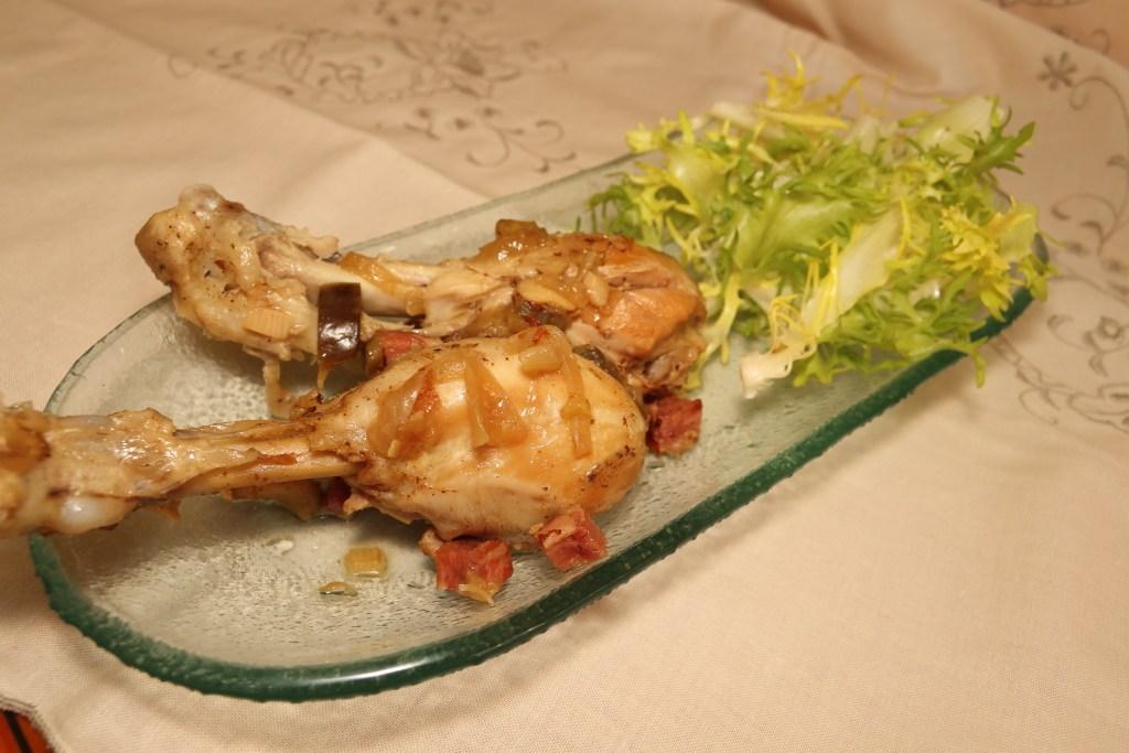 Si utilizamos jamoncitos de pollo: limpiamos y retiramos la piel, salpimentamos y reservamos. Si es un pollo entero troceado: limpiamos, retiramos la grasa sobrante, salpimentamos y reservamos.