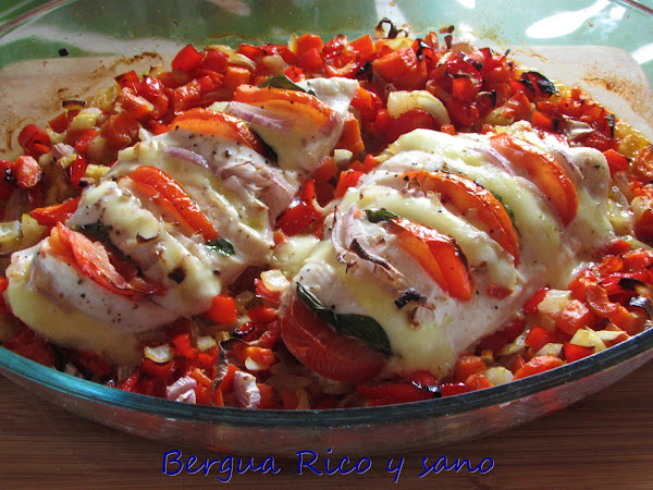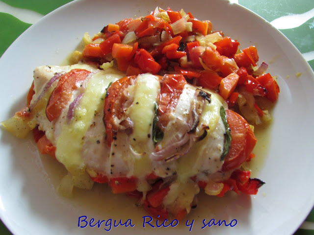 Primera receta del año; empecemos con un plato suave y sano, pero lleno de sabor: estas pechugas asadas que quedan bien jugosas. ¿Conocéis las patatas hasselback? Son esas que se hacen al horno pero con muchos cortes finos por arriba. Así mismo se cortan estas pechugas, de ahí el nombre. ¿Y conocéis la famosa ensalada caprese italiana? Tomate, mozzarella fresca y albahaca fresca. Pues de ahí viene el apellido de esta receta, y es que en los cortes vamos a meter precisamente esos ingredientes.Y esa es básicamente la idea. Esta receta la hago mucho con las verduras que tenga; lo aso todo a la vez y listo. Otras veces hago las pechugas solas y sirvo con una ensalada, y otras veces cambio el tomate, la albahaca y la mozzarella por queso azul y pera o manzana, pero eso vendrá en otra receta. Hoy os explico esta.