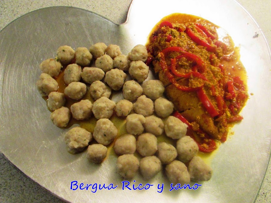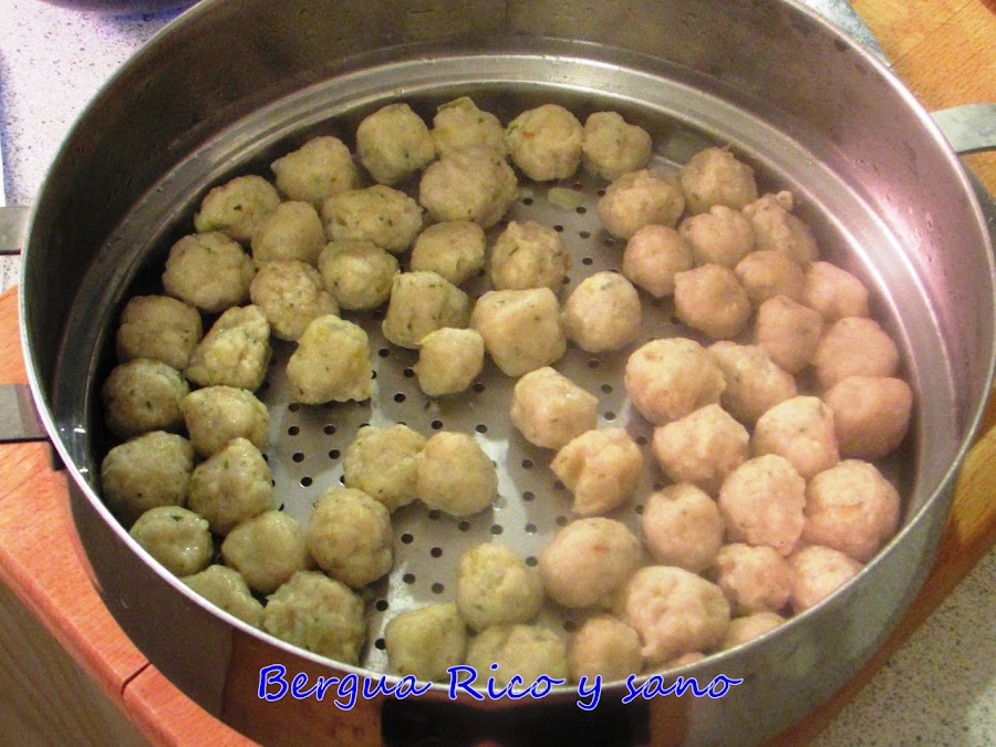 5. El otro truco de estos ñoquis es que no hace falta estirar la masa en forma de cilintro para ir cortando, podemos ir haciendo bolitas con las manos y nos quedará tan bien y tan rico (La próxima vez las haría un poco más pequeñas). Se tarda muy poquito en cocinarlas, así que las reservamos mientras hacemos el pollo.