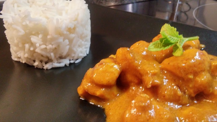 La salsa Korma es un tipo de curry hindú. Puede usarse tanto para pollo, como para cerdo o incluso gambas, adaptando el tiempo de cocción. En esta ocasión para ir más rápido he utilizado una salsa korma ya preparada a la que añadiré leche de coco, aunque también puede usarse un yogur natural como espesante.