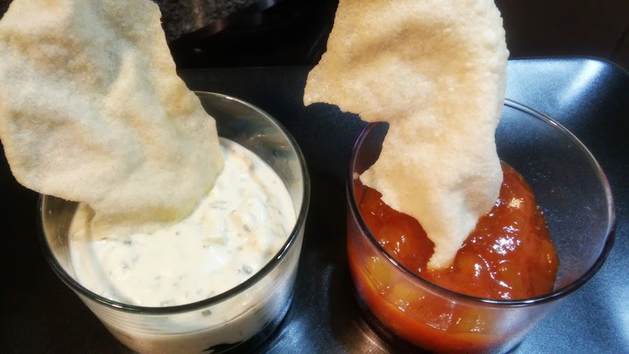 nada mejor que unos pappadums con chutney de mango y de menta.
