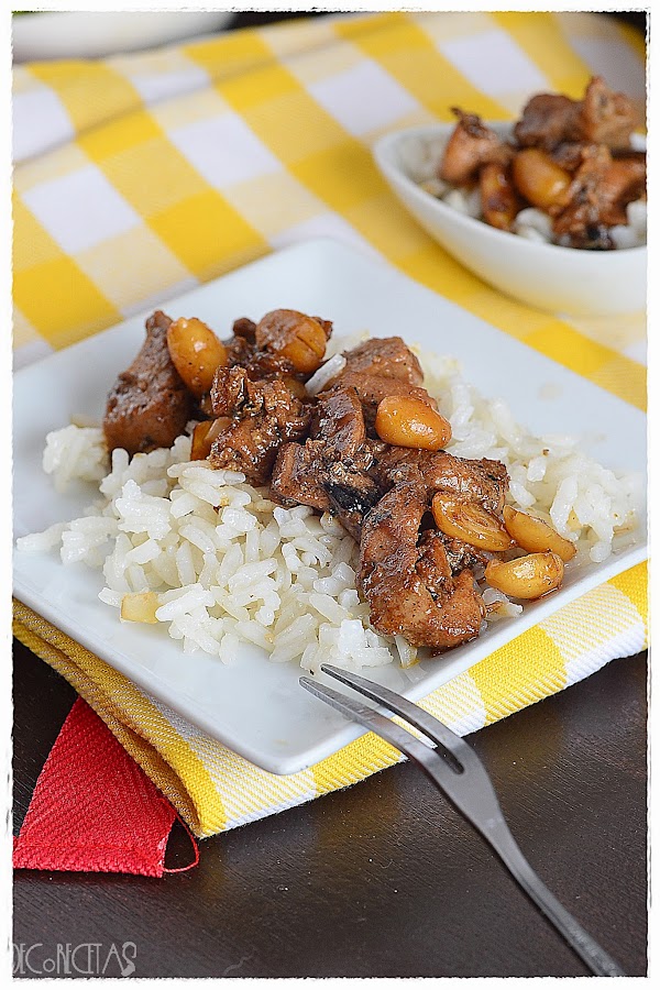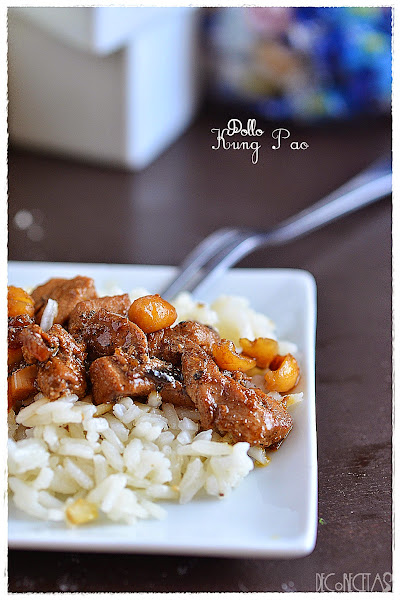 Este pollo lo tenéis que hacer, porque sorprende el aroma y las distintas texturas. Suele ser picante, y aunque yo le añadí tabasco suele contener guindillas
