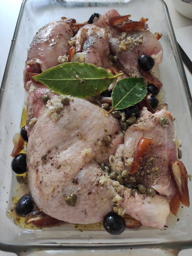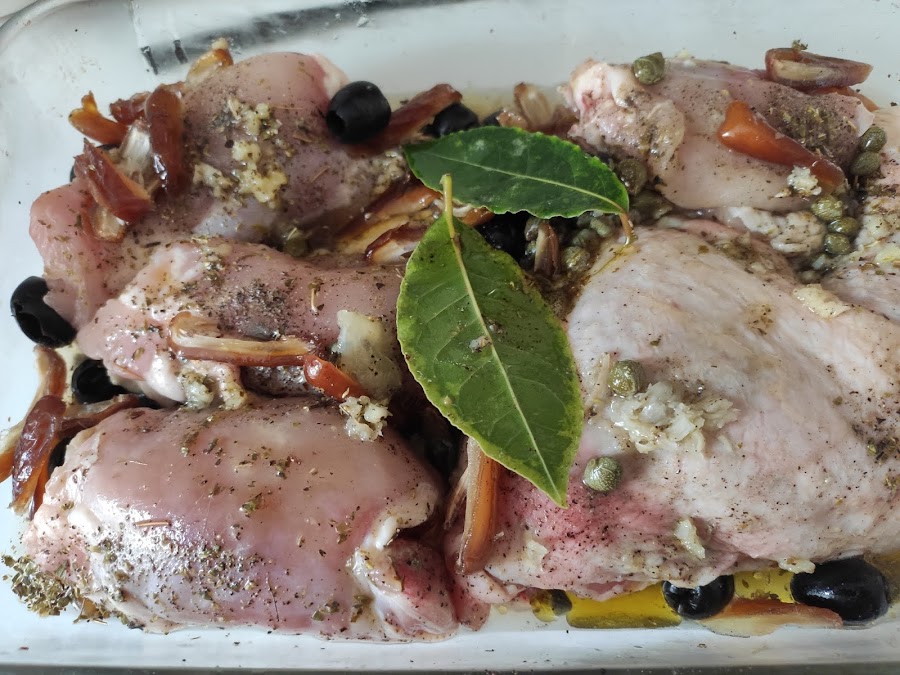 También se puede cocinar sin macerar si andamos justos de tiempo. En ese caso salpimentamos el pollo frotando bien la piel antes de incorporar el resto de los ingredientes de la marinada.