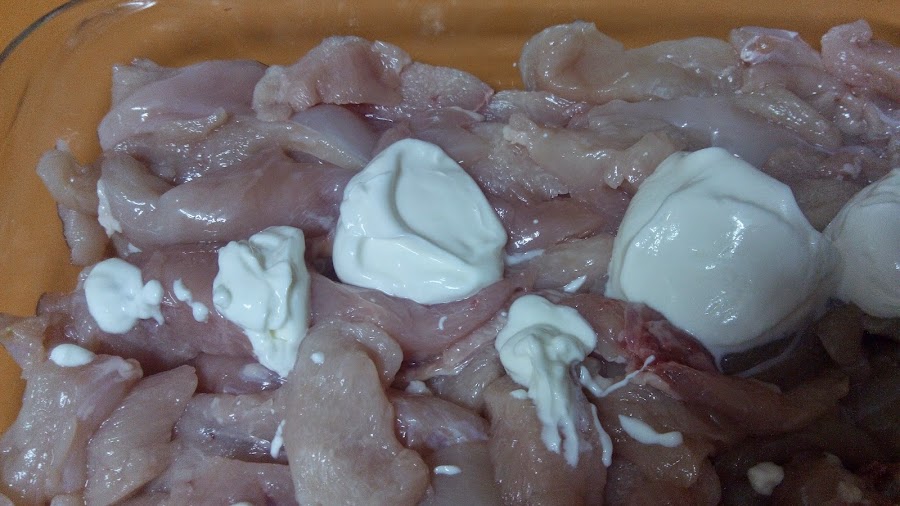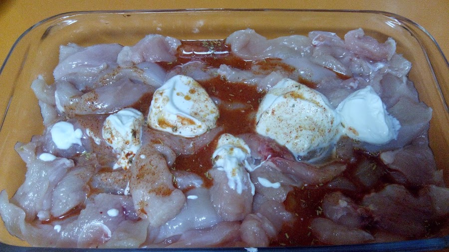 Lo removemos todo muy bien, que el pollo quede bien cubierto con la mezcla.