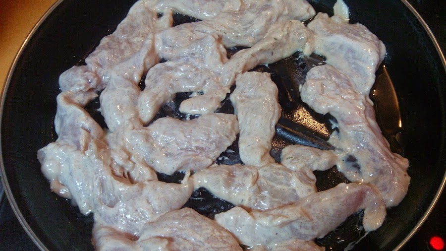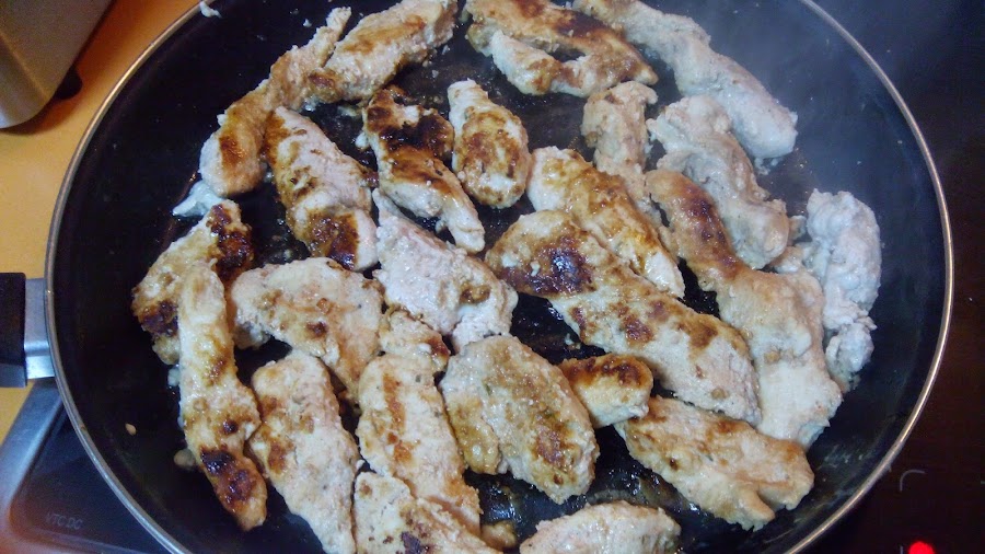 Cortamos las pechugas en tiras.