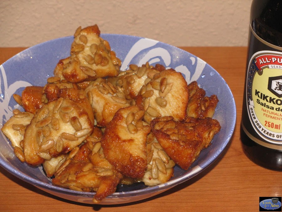 Bien,aquí va mi primera aventura con la soja.Obviamente he tenido que fisgar por la red en busca de ideas y vi este marinado en varios sitios con la diferencia que lo rematan con semillas de sésamo.En fin,que me puse,lo hice y nos ha encantado.Sabor increíble el de la soja.Antes ya la había probado pero no se como sin ganas.A ver si a partir de ahora amplio un poco más el conocimiento de este producto y me atrevo con más cosas.De momento allá vamos...
