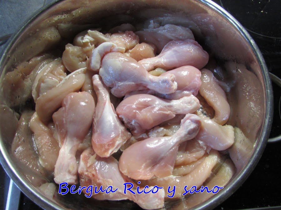 Aprox. 1 kg de pollo (en mi caso 800 g de pechuga y el resto de muslos)