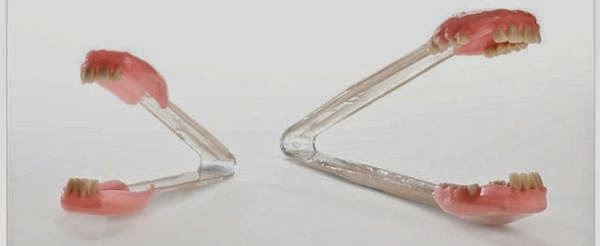 En un puestecillo callejero encontré lo que buscaba, dos dentaduras ¿completas? con las que le he hecho unas pinzas monísimas para la carne, así que el sábado, aprovechando la ya obligada barbacoa, hice entrega de mi regalito a Marita, que mientras le quitaba los papeles de periódico donde venían envueltas iba preguntando ¿qué será, qué será?....jajaja. Cuando descubrió "el pastel", su amiga Maria Angustias, en un ataque indiscriminado de risa y tos escupió sobre la camisa blanca de Marita el trago de tintorro que acababa de tomar. Marita cariño, en la próxima entrada podrás leer el cutre-truco sobre cómo quitar las manchas de vino en la ropa.....jajaja.