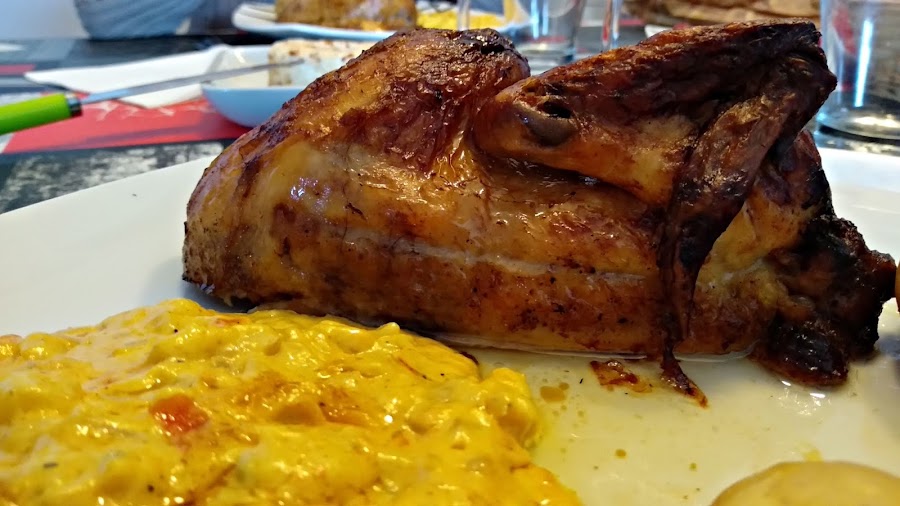 Sirve el pollo acompañado de la salsa y de un poco de pan. Os recomiendo que probéis a poner dentro del pan un poco de pollo desmenuzado junto con un poco de jugo del mismo pollo y con un poco de salsa, sale un bocadillo riquísimo.