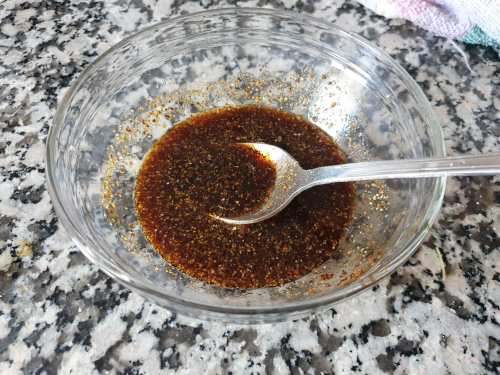 En un tazón pequeño, combine todos los ingredientes para la marinada.