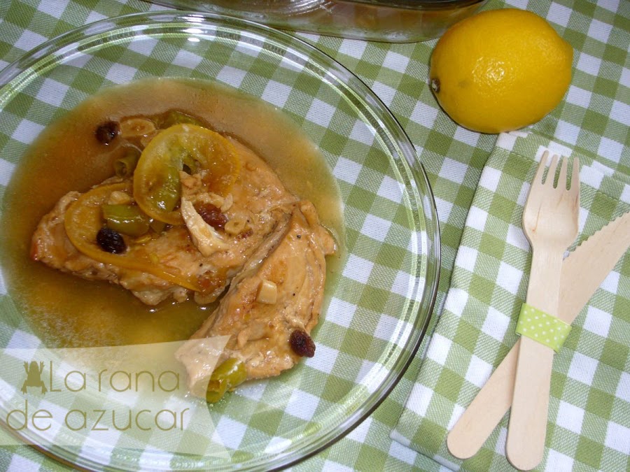 Yo la tuneé un poco, adaptándola a lo que nos gusta y tenía en casa.No puse ni alcaparras ni perejil,esto último porque no tenía y tampoco mantequilla que ya sabéis que no me gusta nada y le añadí pasas sin semillas y guindillas picante, que junto al sabor dulce de la miel y las pasas le da un toque genial.
