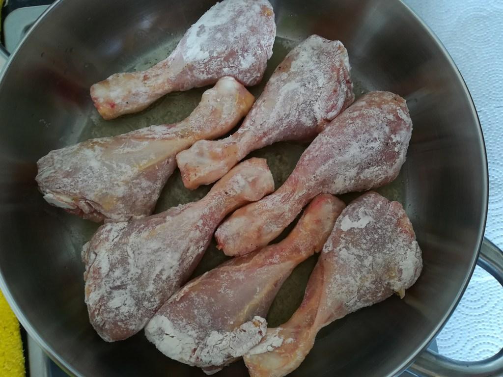 8 jamoncitos de pollo, ésta vez he puesto del de corral (que es más amarillo). Puede ser también también con un pollo entero.