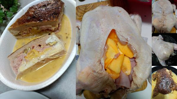 El relleno admite muchas variantes desde la carne picada pasando por los frutos secos o frutas deshidratas sin olvidarnos del huevo cocido,pero en esta ocasión le he añadido fruta fresca más concretamente kaki que estamos en temporada y le aporta muy jugosidad al pollo.