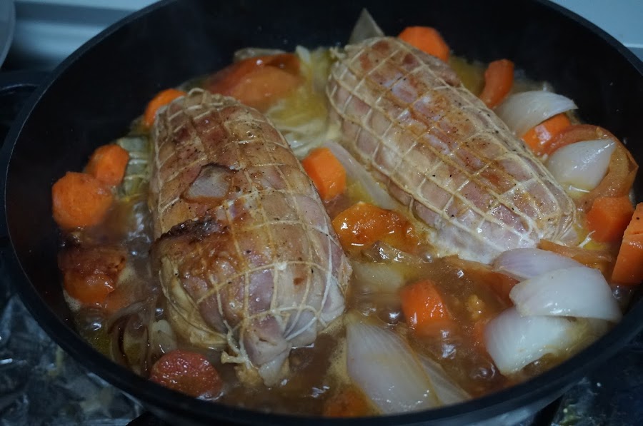 Como podéis ver son dos redondos de pollo, los he preparado con una salsa de verduras donde predomina la zanahoria, porque queda una salsa muy suave y le va muy bien al pollo.