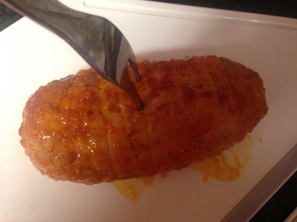 Pollo relleno de gamba y beacon
