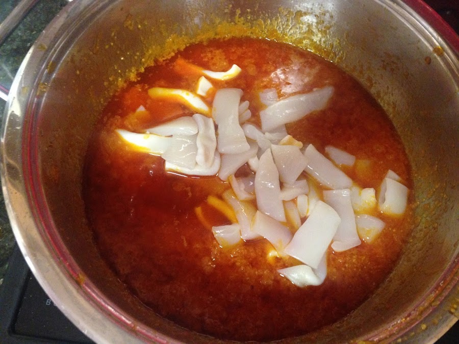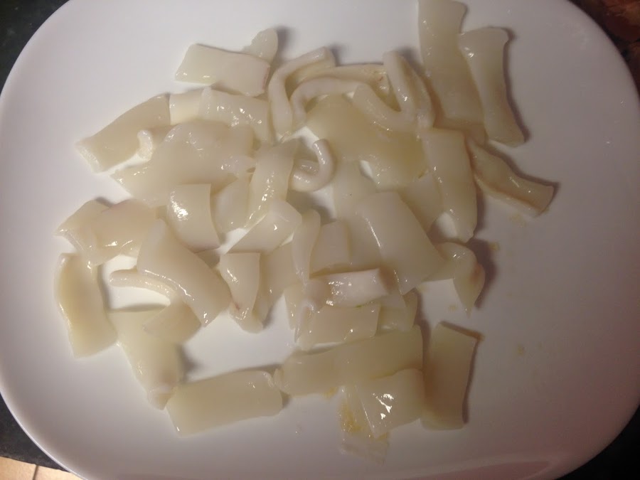 Cortaremos las tiras de calamar.
