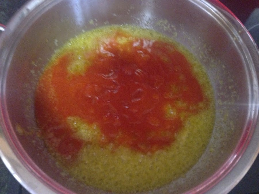 Cuando este doradita agregamos el tomate triturado.