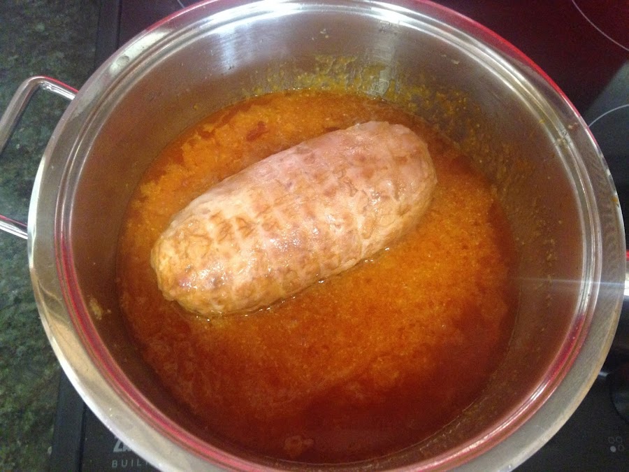 Una vez ha reducido es momento de poner el pollo a fuego medio durante 20 minutos. Dandole vueltas.