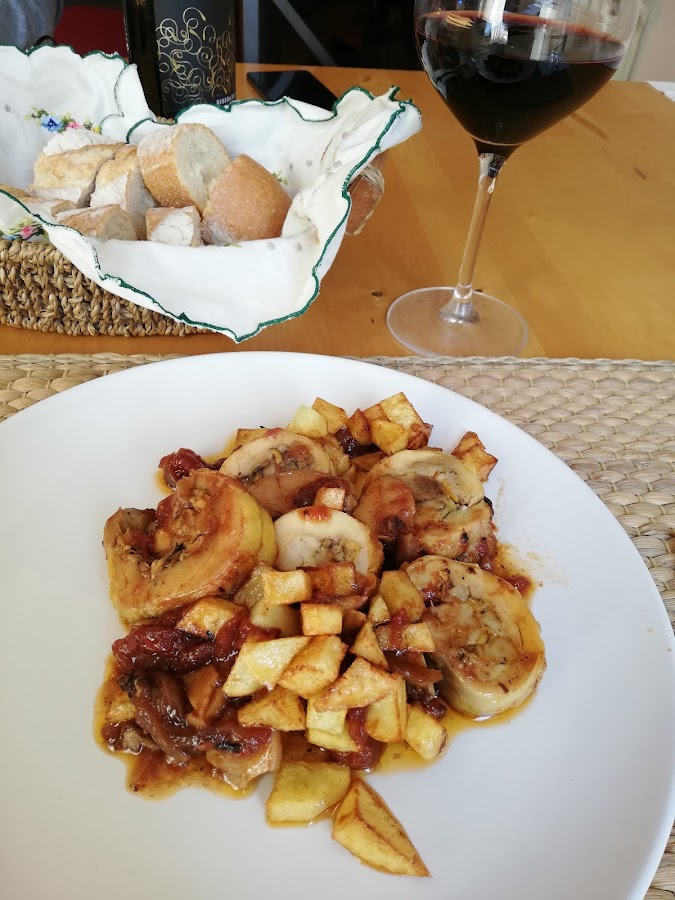 5. Ahora añadiremos el pollo a rodajas y cubriremos con un poco de caldo y dejaremos hasta que la salsa coja consitencia.