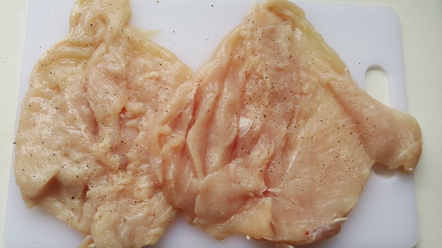 Lo primero que haremos será partir la pechuga en dos y abrir cada mitad en dos trozos más (sin llegar a dividirla completamente), dejando una loncha como se ve en la foto para rellenar después.
