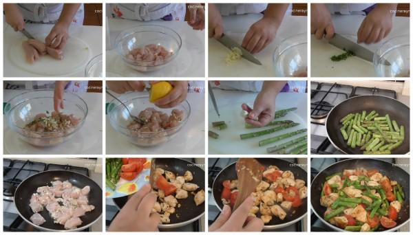 Pollo salteado con espárragos
