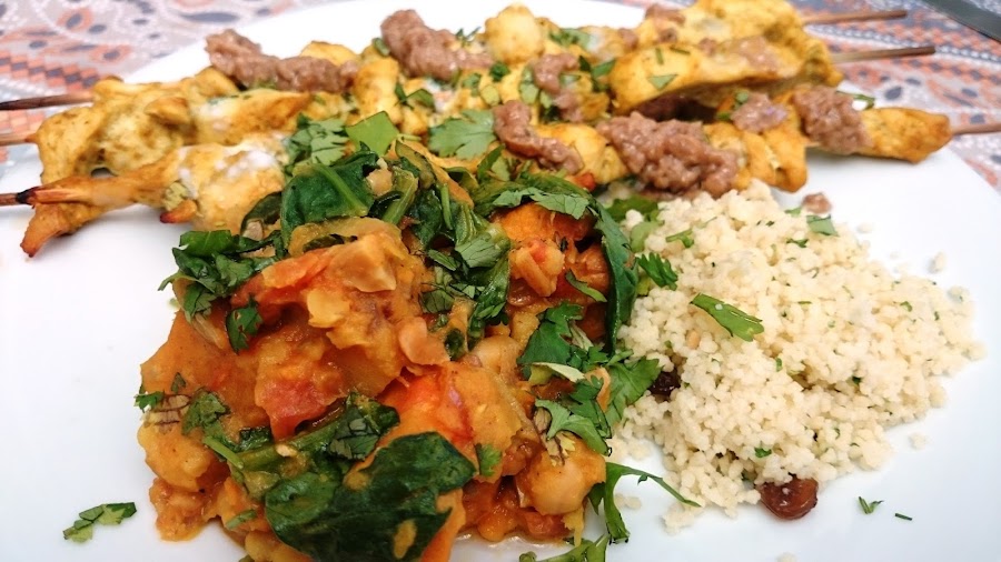 Rallamos el jengibre y lo ponemos en un bol. Mezclamos con la cúrcuma, el cilantro molido, una cucharada de azúcar, una cucharadita de comino y una cucharada de leche de coco. Añadimos el pollo, removemos bien todo junto y dejamos marinar unos 30 minutos a temperatura ambiente o sino 24 horas en el frigorífico.