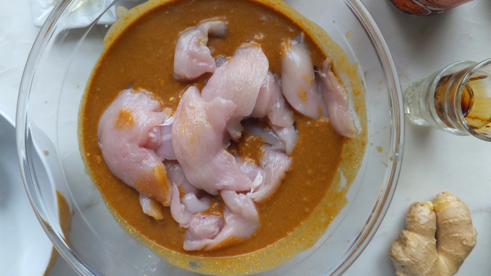 2. Echa el pollo dentro del marinado y remueve bien. Tapa el bol con film transparente y deja que repose en la nevera durante todo la noche o 24 horas. Si tienes mucha prisa, lo mínimo serán 2 horas.