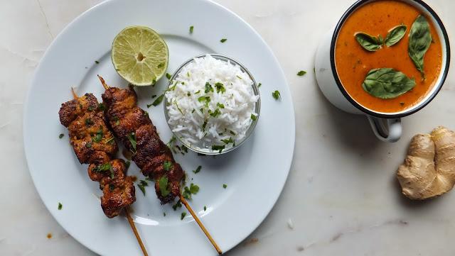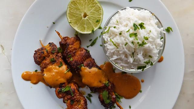 {RECETA DE POLLO SATAY CON SALSA DE CACAHUETE}