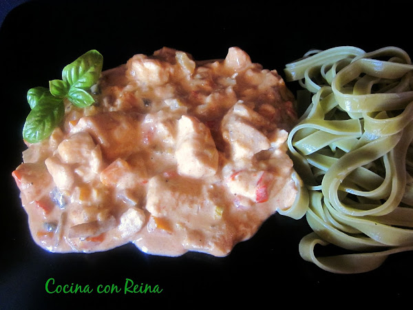 Este tipo de salsas lo ideal es acompañarla con arroz, pero yo he preferido hacerlo con pasta y así cambiar.