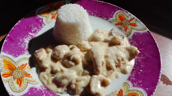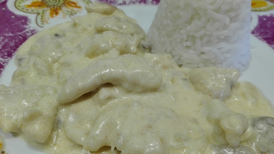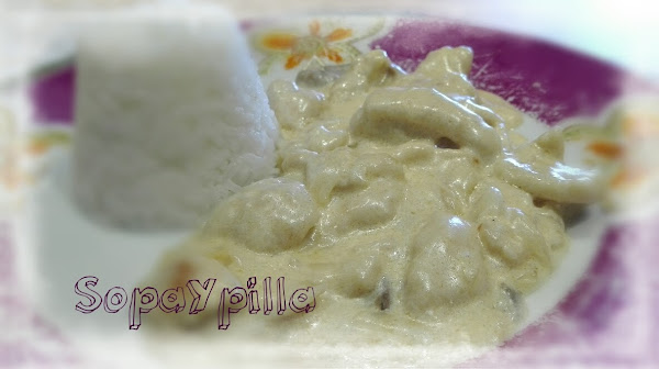 - Bajar el fuego, añadir la nata (crema de leche), salpimentar y dejar espesar esa salsa. Si no espesa, se puede añadir maizena, a mi no me hizo falta.
