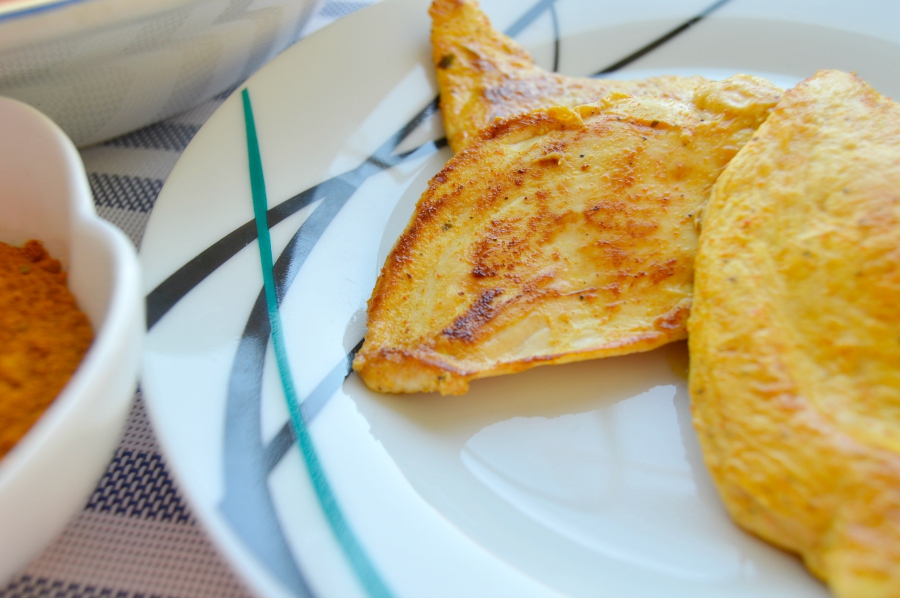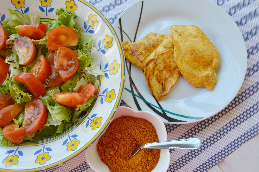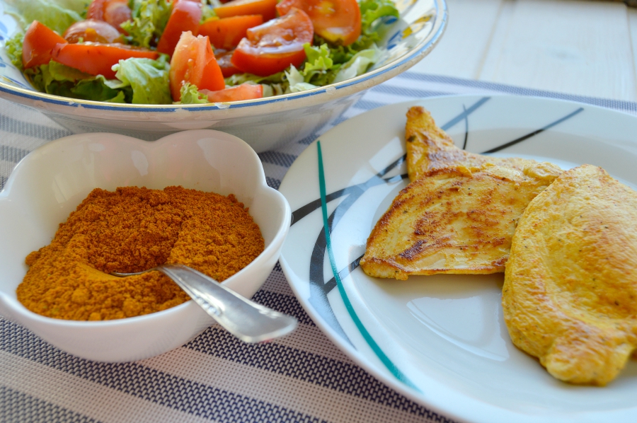 Como ya he dicho, el pollo tandoori masala está generalmente cocinado en el horno, aunque yo he decidido para simplificar y hacer esta receta más veraniega y rápida hacerlo a la plancha. Al marinar las pechugas en esta salsa de yogur quedan muy jugosas y el sabor de las especias es ¡mmmm! delicioso.