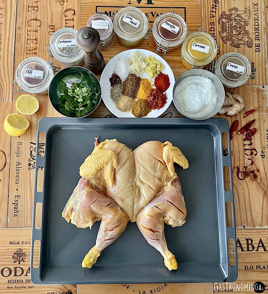 Al parecer, este horno es originario de Punjab, ubicado en la región de lo que hoy es el noreste de la India o el sureste de Pakistán antes de la división de la India británica de 1947 y hasta el día de hoy se sigue usando ya que es extremadamente popular en el país. El horno tandoor o tandoori también es usado para cocinar panes y hacer otros asados. La gran mayoría de restaurantes de comida India ofrecen en su menú pollo tandoori y gracias a la diosa Shiva, no necesitamos un horno tandoori para hacer esta receta, aquí el secreto está en el sabor del adobo que le pongamos al pollo, luego, podrás cocinarla en una barbacoa o en un horno convencional, como haremos hoy. Esta receta es ideal para hacerla en hornos verticales o en un cilindro ya que tienen la misma función que el horno tandoori.