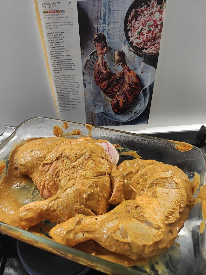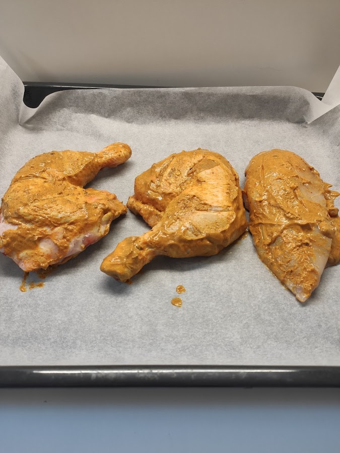 Masajeamos el pollo con la marinada introduciéndola bien por todas las cavidades y superficies.