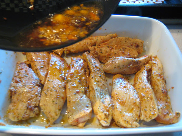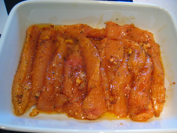 Poner la fuente en el horno precalentado 180º unos 15 minutos aproximadamente o hasta que al cortar no esté crudo por dentro. Ten cuidado si eliges las pechugas porque si las haces mucho quedaran secas, ponle menos tiempo.