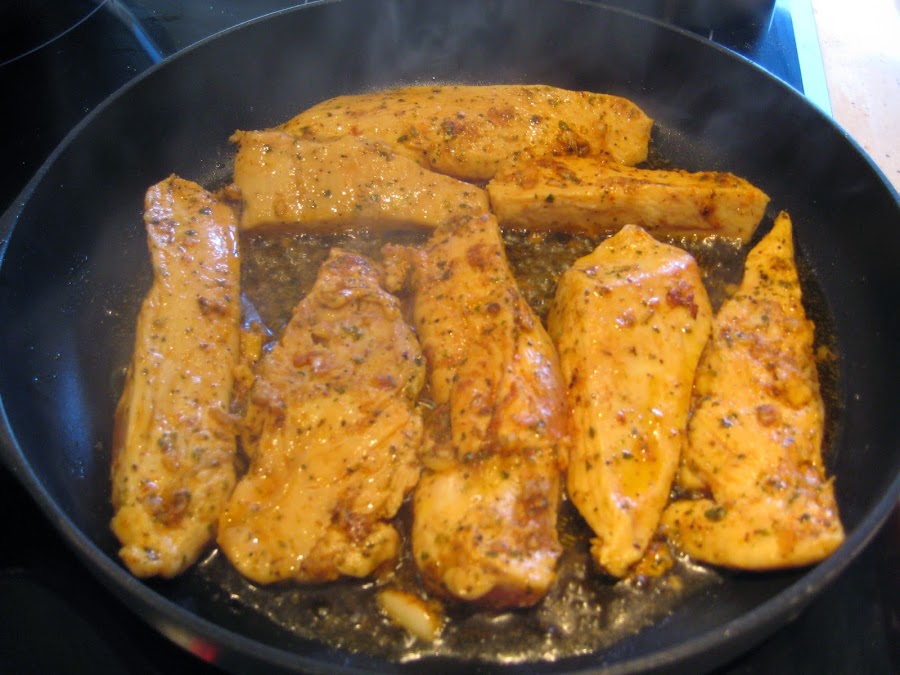 Un chorro grande de aceite de oliva para la mezcla + otro para dorar el pollo.Elaboración: