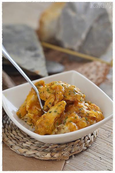 Idóneo acompañarlo de arroz basmatic, que también es muy aromático. Al igual, que suele realizarse con pechuga de pollo, aunque yo en esta ocasión lo hice con muslos y contra muslos.